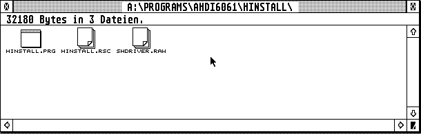 Um den Festplattentreiber auch auf der Festplatte installieren zu können, muß zuerst auf die Festplatte zugegriffen werden können. Dazu muß der AHDI gestartet sein. Wenn dies nicht schon über den AUTO-Ordner beim Reboot geschenen ist, kann er auch von Hand nachträglich gestartet werden.