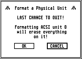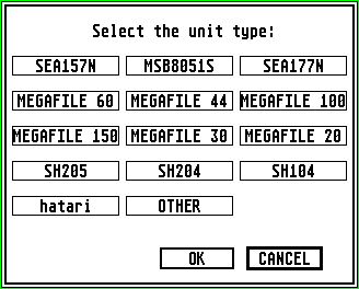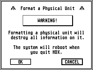Mit dem Programm HDX kann eine Festplatte eingerichtet werden. Mit der letzten Version lassen sich sowohl Festpaltten am ACSI Interface als auch am SCSI Interface des TTs einrichten. |