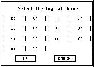 Zuerst ermöglicht ein Dialog die Auswahl der Partition, auf der der Festplattentreiber installiert wird. Es kann nur eine GEM Partition, die nicht größer als 16 MB ist, ausgewählt werden. Um den Festplattentreiber auf der Festplatte zu installieren, muß der Festplattentreiber geladen sein. Wenn auf der Bootdiskette kein AUTO-Ordner mit AHDI.PRG vorhanden ist, kann der Treiber aus dem AUTO-Ordner aus dem Installationsverzeichnis auch manuell gestartet werden. |