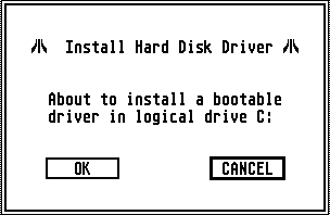 HINSTALL kopiert den Festplattentreiber unter dem Namen SHDRIVER.SYS auf die ausgewählte Partition und schreibt einen ausführaren Bootsektor, der den eigentlichen Festplattentreiber lädt. |