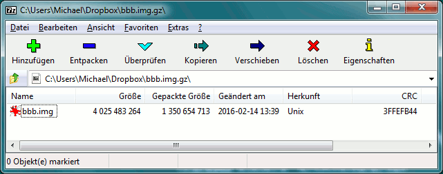 Das SD-Card Image ist mit gzip gepackt und muß zuerst entpackt werden,