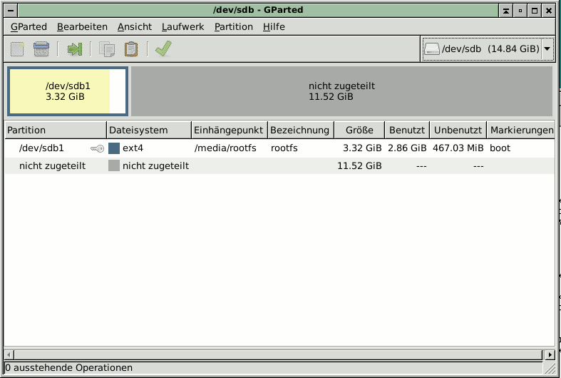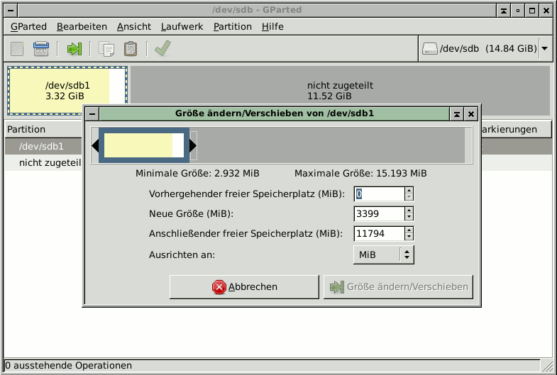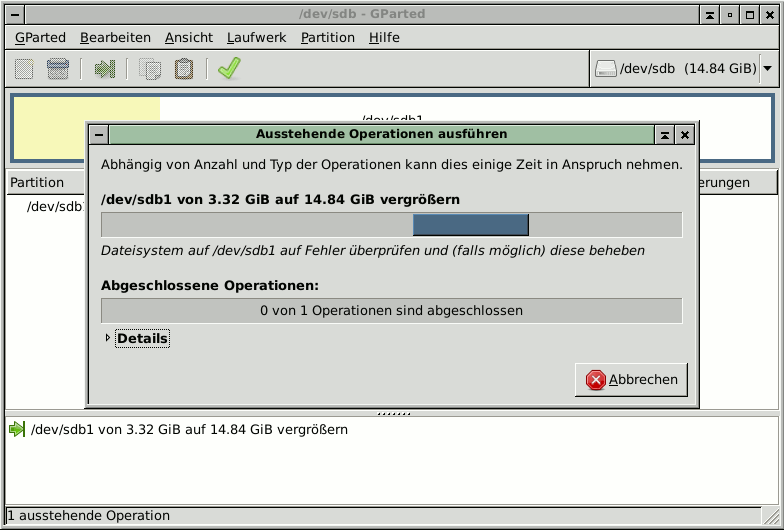 Nach dem Anklicken des grünen Hakens und bestätigen, wird die Partition angepaßt. |