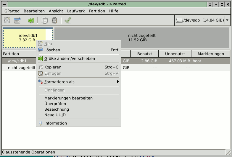 aber auch eine ISO Image einer gparted CD, von der gebootet werden kann.